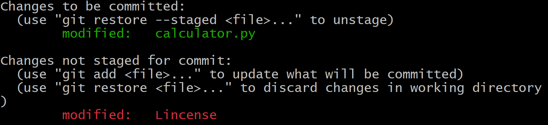 git add calculator.py # calculator.py 파일을 staging area에 올린다