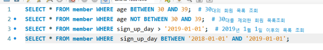 조회는 SELECT 구문을 활용하여 진행할 수 있다. 특정 값 사이에 있는 값을 조회하고자 할 때에는 WHERE 구문에 BETWEEN 연산자를 활용하여 특정 값 사이에 있는 값을 조회할 수 있습니다.