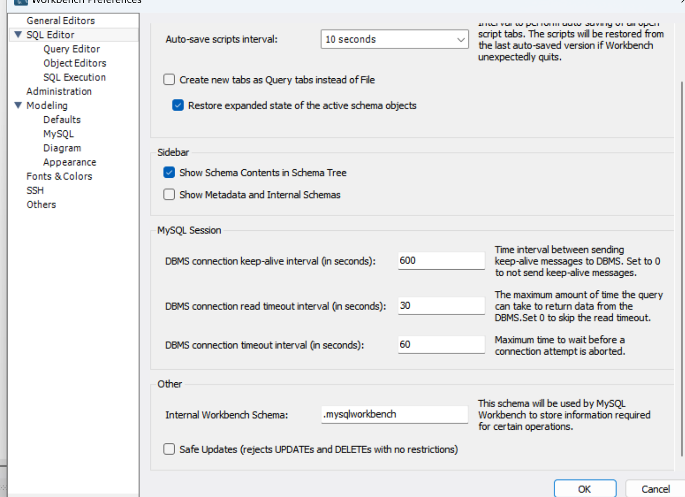 이는 UPDATE문을 주의깊게 사용하지 않아 발생하는 문제점을 미연에 방지하기 위함입니다. 그러면, 이 safe update 모드를 꺼보도록 하겠습니다.