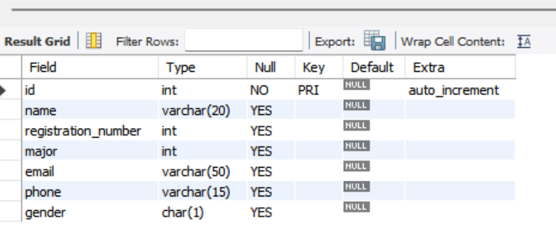 DESCRIBE student;
