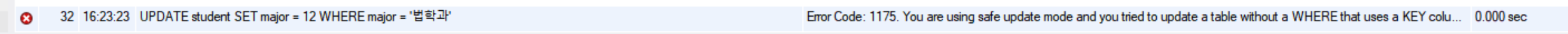 WHERE 절에 PRIMARY KEY가 사용되지 않은 UPDATE문이 실행되지 않도록 막아놓은 것입니다.
