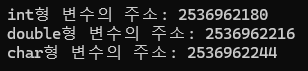 double형 변수는 016번지부터 023번지까지 8바이트가 할당되었으며 char형변수는 044번지 한 바이트에 할당되었을 것입니다.