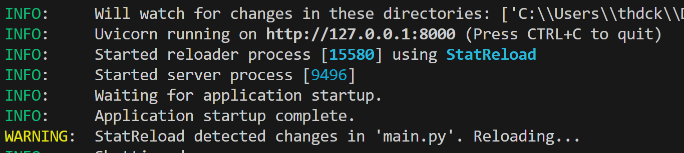 --reload는 개발 중 코드 변경 시 자동으로 서버 재시작합니다.