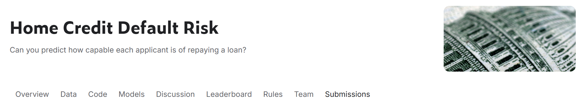 오늘은 캐글데이터셋 중에서 Home Credit Default Risk 주제를 통해 캐글에 Submit한 뒤, 점수를 확인하는 작업을 진행해보겠습니다.